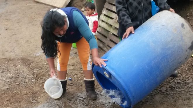 The added problem (and cost) for someone like Flor Quinteros on the higher ground is that the water truck can't reach her door, so steep is the unpaved hill.