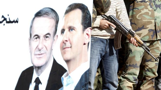 New posters of President Bashar al-Assad hang from the centre of soaring archways that welcome you into Syria and replace the once-fading images all along this route from the border with Lebanon.